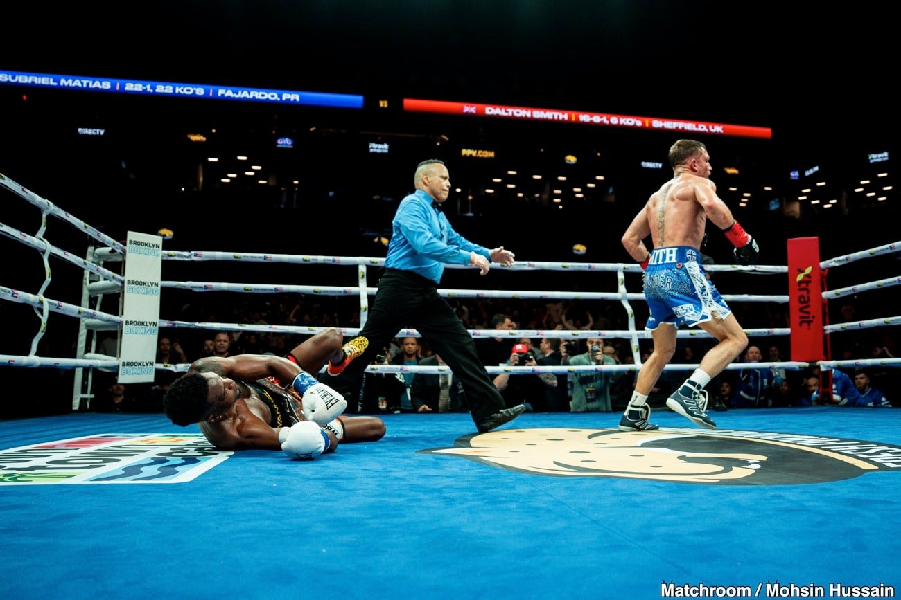“No one has accomplished what Smith did to Matias,” Hearn remarked afterward, applauding both the knockdown and the fight’s conclusion. That assertion stands. Matias had never experienced a stoppage before, and Smith took something significant from him that evening. However, the leap Hearn made following that is more ambitious.