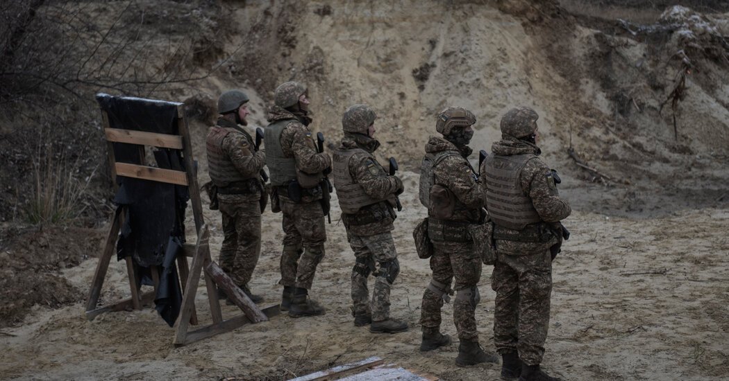 Ukrainian soldiers during a live-fire training exercise at a military training ground in the Dnipro region, in December.Credit...Laetitia Vancon for The New York Times