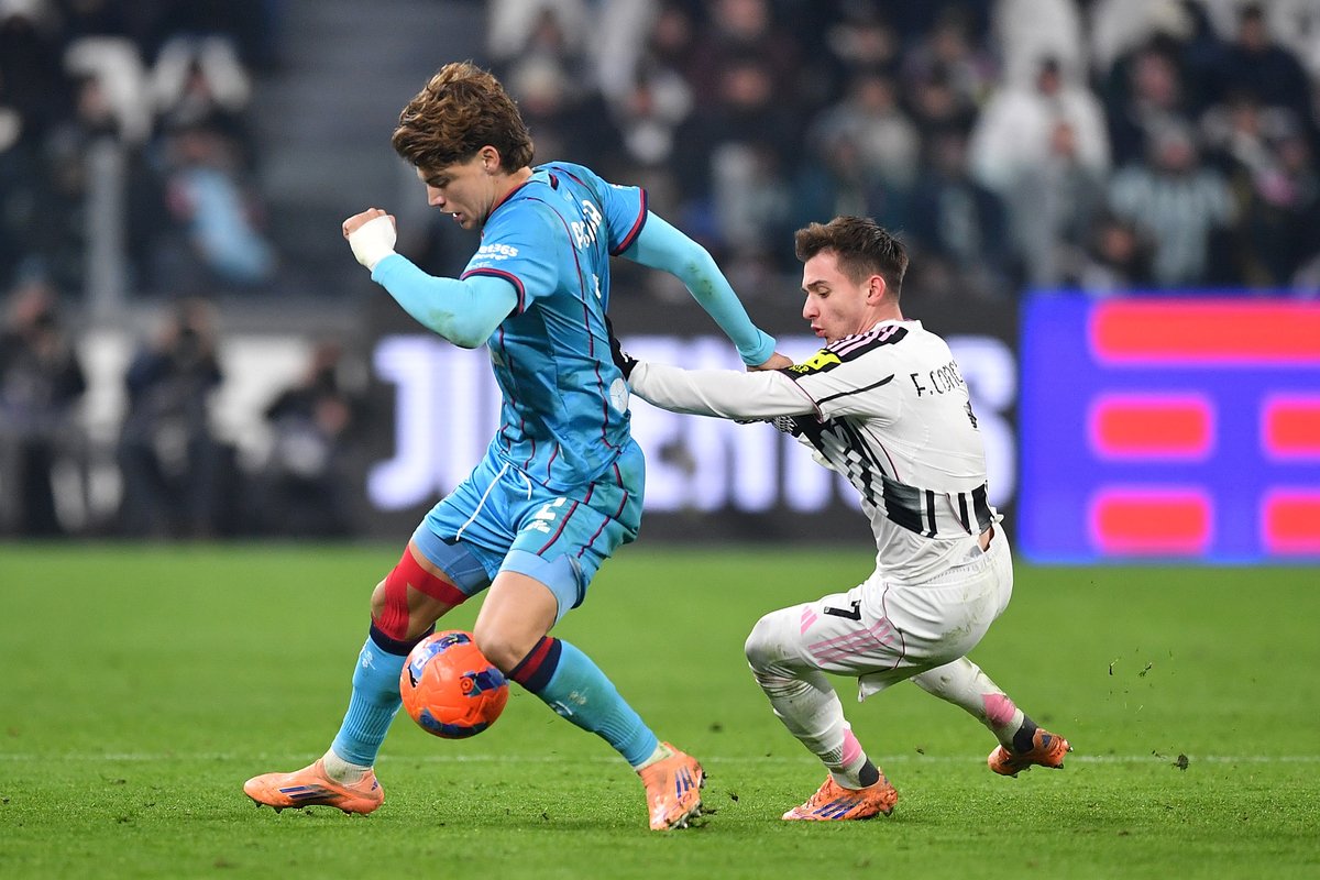 TURIN, ITALY – NOVEMBER 29: Francisco Fernandes da Conceicao of Juventus FC contests with Marco Palestra of Cagliari Calcio during the Serie A match between Juventus FC and Cagliari Calcio at Allianz Stadium on November 29, 2025 in Turin, Italy. (Photo by Valerio Pennicino/Getty Images)