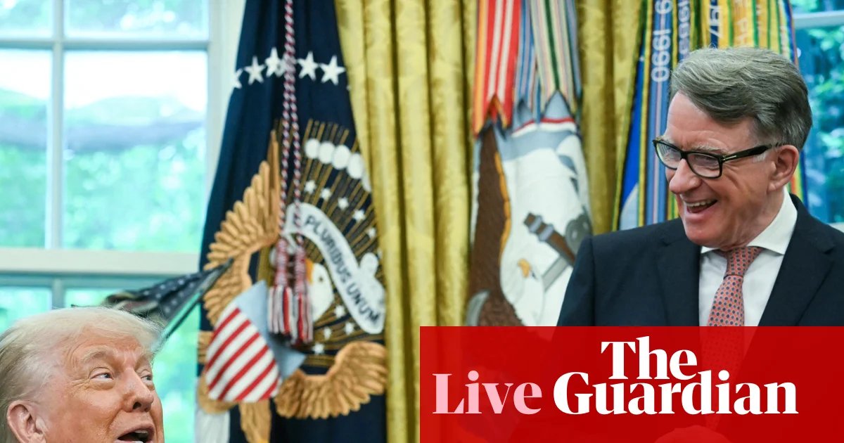 Peter Mandelson highlighted his admiration for Donald Trump’s ‘graciousness’, a term he admitted is not commonly linked with the US president. Photograph: Jeff Overs/BBC/PAShareUpdated at 12.06 GMTKey eventsShow key events onlyPlease enable JavaScript to utilize this featureCouncils reportedly spent around £353m last year to house children in illegal residences, which included caravans, holiday camps, and Airbnbs, based on a new report by the children’s commissioner Dame Rachel de Souza. Here’s an excerpt from a report by the PA news agency regarding these findings: